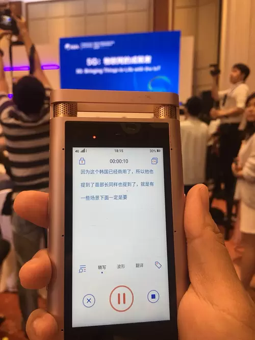 值得一提的是,在分享会现场,作为北京大学光华管理学院MBA校友导师,同时也是科大讯飞的副总裁李传刚博士,在进行致辞时,讯飞智能录音笔也积极地工作着,现场眼尖的观众发现,讯飞智能录音笔的转写速度几乎没有延迟,李博士的话音刚落,讯飞智能录音笔的屏幕上立刻就会显示转写结果。伴随着李博士的演讲结束,现场响起热烈的掌声时,讯飞智能录音笔的工作也完成了,成功将现场的演讲内容实时转写成文字,堪称“声落稿成”。