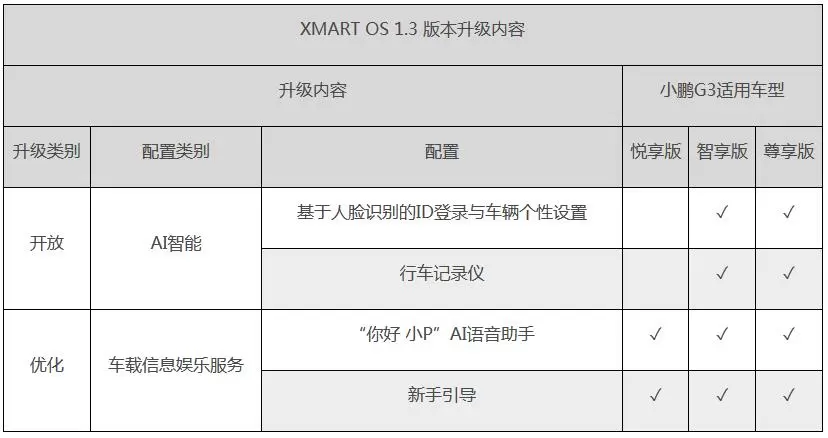Xmart OS 1.3版本OTA升级 小鹏G3开放行车记录仪、人脸识别ID登录等功能