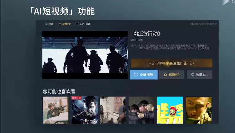 此外,H6搭载第7代智能操作系统,拥有AI短视频、时光机、悬浮菜单等功能。其中,AI短视频通过短视频的呈现方式,将影视的精彩内容在短时间内呈现出比海报更多信息来吸引用户观看,提升用户看电视的兴趣。根据浏览偏好进行标签设定,实现后台大数据的智能推送。极大缩短了用户接触到想要的内容的时间、同时还享受到大屏的体验。