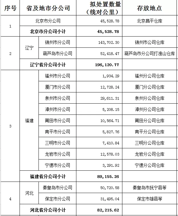 据悉,中国联通将于2018年5月17日10时起至2018年5月18日10时止(延时的除外)在阿里拍卖平台对中国联通信在北京、辽宁、内蒙古、黑龙江、山西、天津、河北、福建、浙江、陕西、海南、重庆和西藏13个省、直辖市分公司所属30个城市区域内报废线缆处置项目进行集中公开拍卖,报废线缆共计799,987.51线对公里。