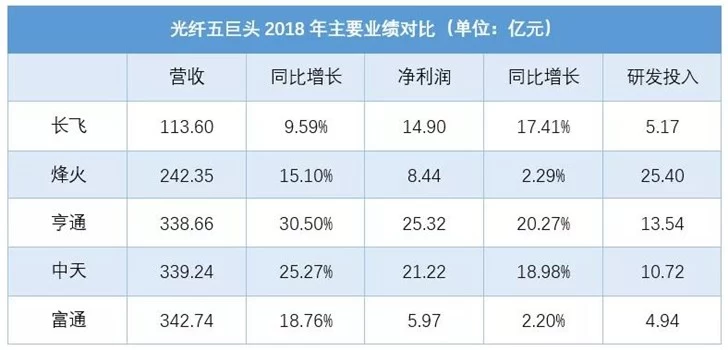 又到年终财报时,最近一段时间,长飞、亨通光电、中天科技、烽火通信、富通集团(未上市,注:富通财报查于上海清算所)五大光纤光缆巨头相继公布2018年全年财报。