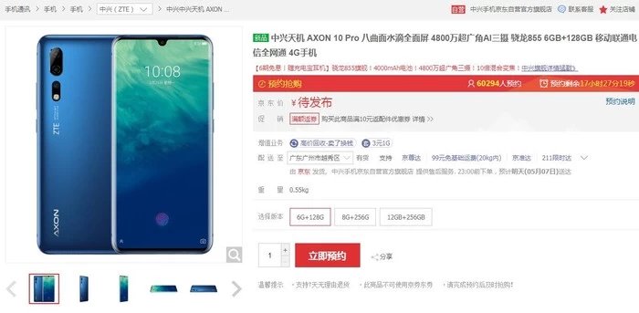 备受大家关注中兴天机Axon10Pro目前在兴官方商城、京东、天猫等平台开启预约,中兴天机10pro配置参数已经在网上商城曝光,中兴天机10pro发布会今晚19点在福州举行,该机售价将于今晚揭晓,有兴趣朋友可以关注一下。