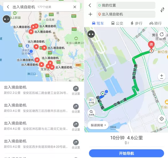 此次在腾讯地图上收录了深圳出入境全部357台自助办证设备的位置信息,深圳用户只要在腾讯地图APP或者“腾讯地图+”小程序,搜索“出入境自助机”,便会获得附近所有设备的位置,同时可一键导航,迅速找到自助设备并办理相关业务,免去了在街头来回寻找设备的烦恼。