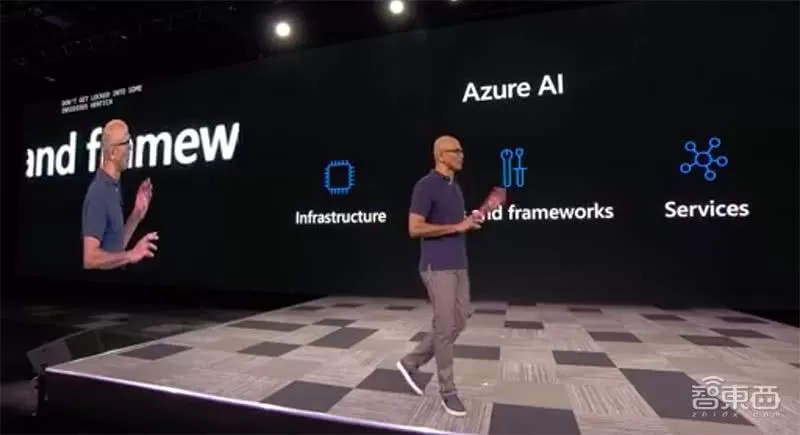 可以说,微软的企业业务都基于云服务进行拓展。而在云服务与AI的结合方面,微软也从基础设施、框架和服务三个方面入手,这也成为贯穿本次演讲的一条明线。