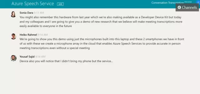 本次大会上,微软还新推出了基于Azure的新服务——认知语音服务,这项功能可以实时将对话转录成文本,并且能够根据不同行业的专业对话进行调整,自动识别专业词汇,而且精度很高。