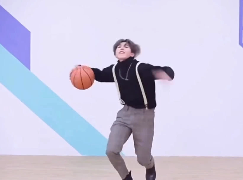 我们用蔡徐坤的照片和英文单词“basketball”进行了创作,一起来看下人工智能生成的效果。