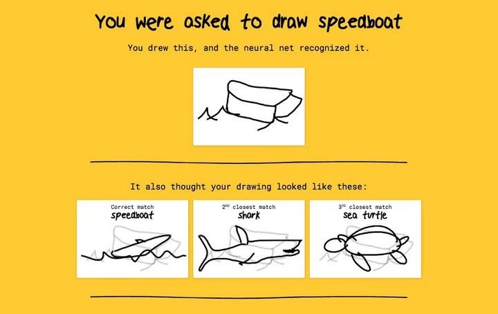 除了写诗、创作歌曲,谷歌还曾开发过一款能一眼看穿你画的是什么的人工智能应用Sketch-RNN。这个AI可以把你画的东西变成理想的画作,它依赖于谷歌的图像识别技术,通过一个简单的手绘图像数据库来和你的画作匹配。另外,在这个AI程序中,用户还可以尝试和它一起完成一幅画作。