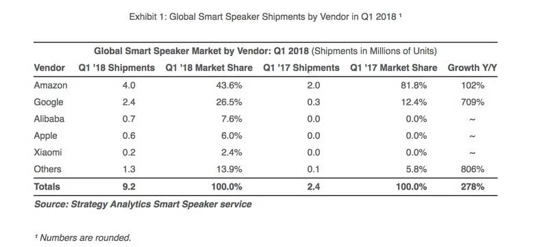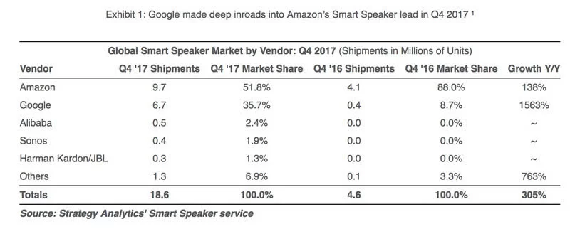 Strategy Analytics 2018年一季度智能音箱市场报告