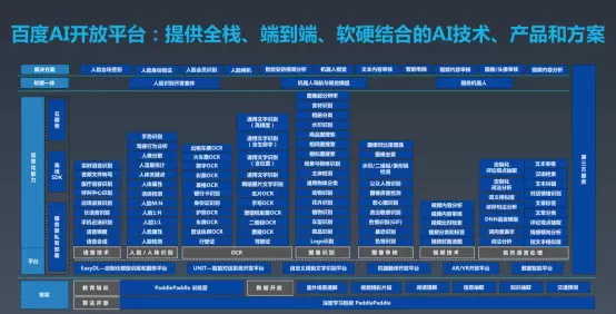 为了支持AI时代的业务场景,百度构建了国内体系最完整、功能最全面的人工智能技术开放平台——百度大脑核心技术及开放平台,提供全栈、端到端、软硬结合的AI技术、产品和方案,从深度学习框架、深度学习实训平台、场景化AI能力、定制化训练平台,到软硬一体模组和解决方案等实现全面开放,加速创新AI产品落地,助力企业智能化转型。百度大脑已对外开放了171项领先的AI能力,并通过百度智能云,为互联网、交通、工业、医疗、零售、金融等诸多行业赋能。