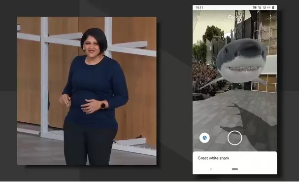 谷歌举了几个例子,例如我们查看人体骨架肌肉结构,又例如浏览大白鲨的有关信息的时候,我们可以通过新增的“3D View”功能浏览这些结果的3D模型,我们甚至可以将这些3D模型通过AR的方式展示在任何平面上,其效果令人惊叹。