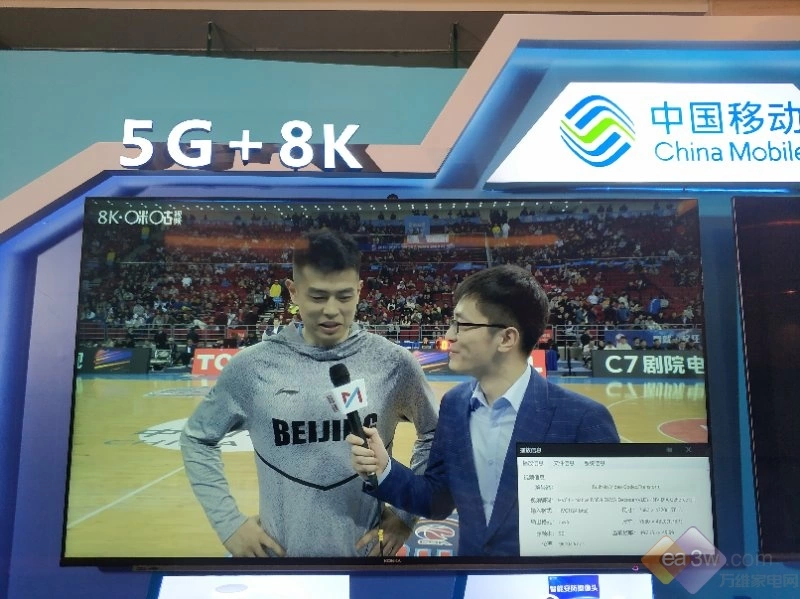 在2019世界超高清视频(4K/8K)产业发展大会上,担当此次5G+8K电视直播的电视是康佳刚推出的全景AI电视A3电视,播放内容是咪咕提供的8K@60Hz体育赛事直播,通过5G公网实现从8K直播信号在75寸8K电视上真实再现,显示到场景中每一个微小的细节,真实可感。