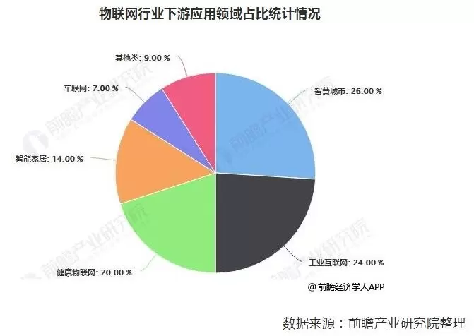 根据前瞻产业研究院分析,行业整体看,物联网的应用主要分为产业、公共和生活三大类。通过国内产业信息数据显示,我国物联网下游细分市场主要集中在智慧城市、工业物联网、健康物联、智能家居等领域。其中智慧城市、工业互联网和健康物联三项所占份额较大,为物联网在我国的主要应用领域。从投资机会上看,以上三大领域或成为国内物联网发展的主要方向,相关机会值得留意。