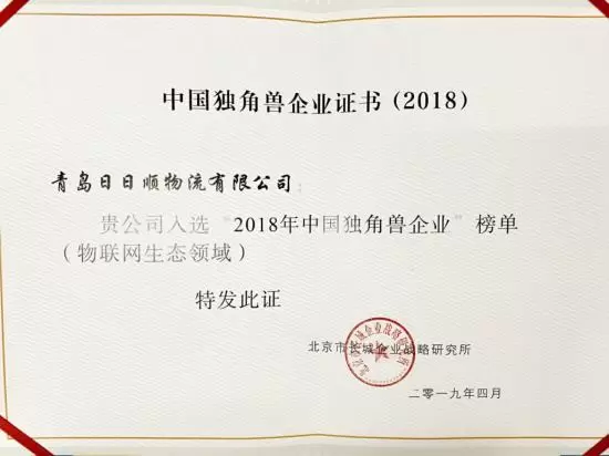 (日日顺物流入选“2018年中国独角兽企业”榜单)