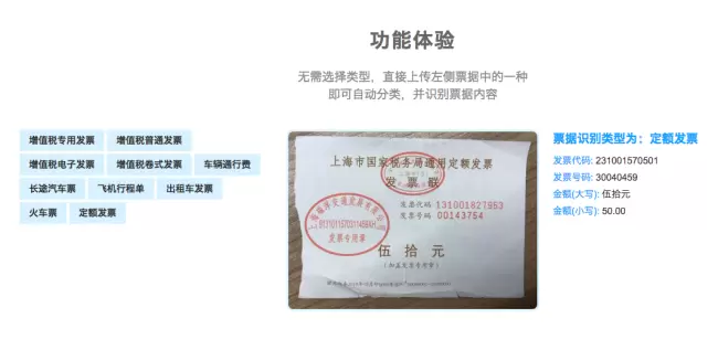 作为成熟的人工智能解决方案服务的提供方,合合信息研发的票据机器人采用人工智能深度学习引擎的STR技术,支持对增值税专用发票、增值税普通发票、增值税电子发票、增值税卷式发票、火车票、出租车票、机动车销售发票、车辆通行费票据、定额发票(含停车票、地铁票、手撕票)等10余种票据进行自动分类,可结构化识别出多个字段,并按行输出所有文字结果。