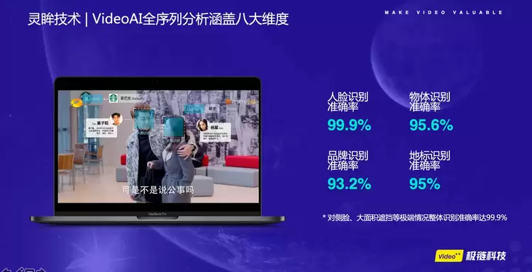 目前VideoAI可以通过独创的全序列采样,对视频内的场景、物体、人脸、品牌、表情、动作、地标、视觉特征检索8大维度进行数据结构化,32轨迹流同时追踪,通过复合推荐算法将元素信息升级为情景信息,直接赋能各种商业化场景。前沿的视频AI技术让极链真正做到了自动化与智能化的AI广告投放。
