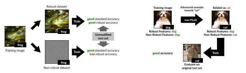 他们证明了对抗性的示例可以直接归因于非鲁棒特征的存在。非鲁棒特征意为从数据分布的模式中得到的具有高度预测性的特征,但这对人类来说是脆弱和难以理解的。