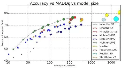 在此过程之后,研究人员创建了两个新的MobileNet模型:MobileNetV3-Large和MobileNetV3-Small,分别针对高资源和低资源的使用情况。然后对模型进行调整并应用于对象检测和语义分割任务。