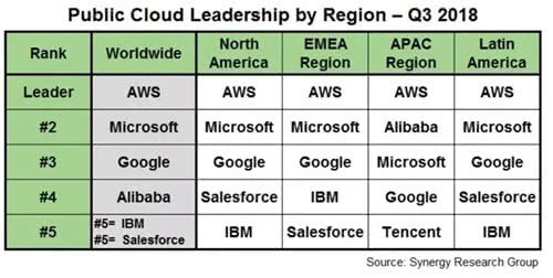 值得一提,甲骨文近年来也示意向云服务领域转型。但就全球公有云市场而言,根据调研机构Synergy Research去年12月数据,亚马逊AWS、微软、谷歌、阿里巴巴分别占据前四地位——甲骨文未入前五。