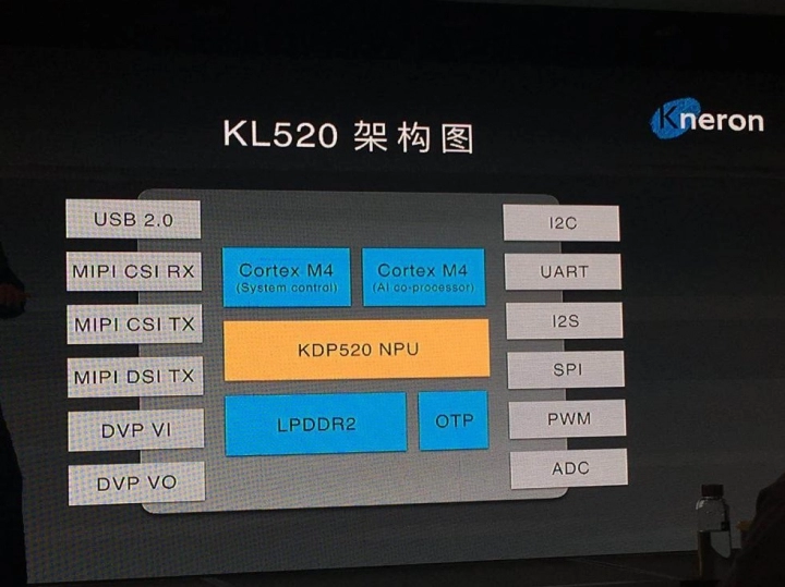 基于上述三大特征,耐能KDP300、KDP320、KDP500、KDP520和KDP720系列IP以及KL520芯片均被赋予这些特性。新发布的KL520专为智能物联网设计,采用40纳米低功耗制程,算力最高可达345GOPS(300MHz),平均功耗仅500mW,是一颗“务实好用”的芯片。