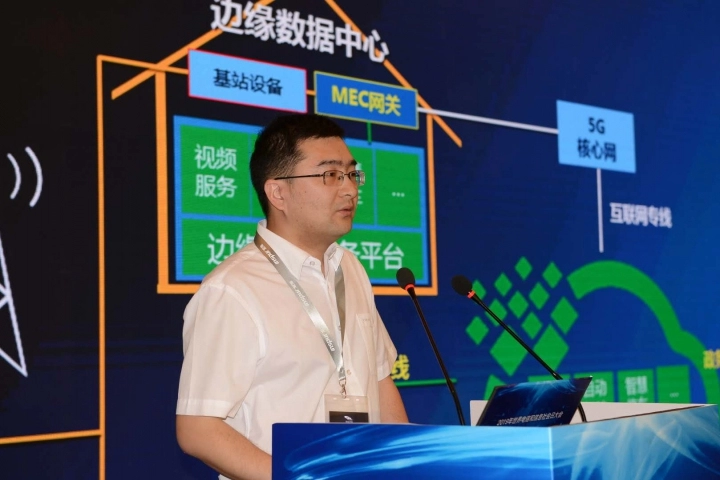 这是我们在今年2月份巴展上发布的首款面向边缘计算的服务器,它相当于是针对边缘的机房做了一些优化,包括大小,尺寸,比较适合放在边缘机房机柜上,还有是适合壁挂的,还有包括远程运维,我们的硬件上也做了针对性的设计,来应对整个各种应用场景。发布了两款,一款是普通的边缘计算,还有一款可以放4G(GQ卡),边缘智能是不可避免的,我们这款也支AI的运算。还有面向边缘计算的一款,刚才是单独的小的服务器,未来边缘机房的形态很复杂,有可能是全新的,有可能是改造的,浪潮推出了微模块数据中心,当边缘计算需要的时候,如果是机房,我们直接布一个微模块的数据中心就可以解决边缘计算的构建。还有一款是面向行业定制化的整机柜,未来在边缘机房用到单个机器太小了,微模块太大了,还有整机柜的解决方案,面向不同的场景放多少CUP,内盘,都是可以定制的,这是我们在边缘计算数据中心硬件的产品。在软件和平台层面,做边缘计算首先要有个网关,我们4K LTE的网关,5G的NSE的网关已经具备了,我们这个网关是个软件,串在基站和核心网之间,对本地业务做分流,分流到本地的处理平台上来。未来面向垂直行业,不同的行业,网络能力和诉求定制化的能力越来越高,我们希望基于边缘平台构建面向行业的(ORAN)的产品,希望支撑不同行业网络连接的场景。在平台上,刚才讲了边缘的机器上部署我们的边缘平台,包括了边缘云,加上云编协同的能力,还有管控发布能力,部署浪潮智慧城市,工业互联网应用场景,都往这个平台上去沉。