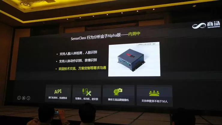 SenseClass盒子分为无感签到盒子Beta版(已经发布)和SenseClass行为分析盒子Alpha版(内测中)。据商汤科技介绍,SenseClass无感签到盒子支持人脸检测和人脸识别,支持单教室50人以上,2分钟内签到成功率接近100%,同时,商汤科技也在为该产品寻求落地合作伙伴。