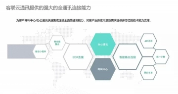 例如,新一代联络中心能够为行业客户提供统一路由、统一计费、统一监控、插件式增值通讯服务以及通讯API开放接口,黑/白名单、智能转呼、双向外呼、语音会议等功能一应俱全,通过将联络中心接口开放,通讯能力API、企业管理对接API、企业数据对接API、音视频SDK均能够与企业实现融合对接,为企业客户的应用及新需求提供多方位的技术能力支撑。