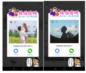 在一方下载七夕情侣皮肤完成后,QQ输入法就会自动将使用的皮肤情侣款推送给用户。只需点击分享按钮,即可快速将七夕情侣皮肤一键分享给自己的另一半,与自己最爱的人完成情侣配对,就好像天生一对,两个人注定要在一起甜甜蜜蜜。