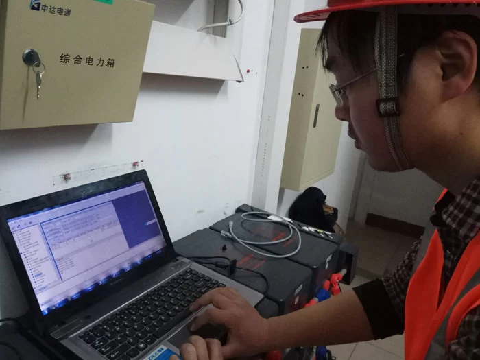 移动网优人员在程潮铁矿站点机房进行调测