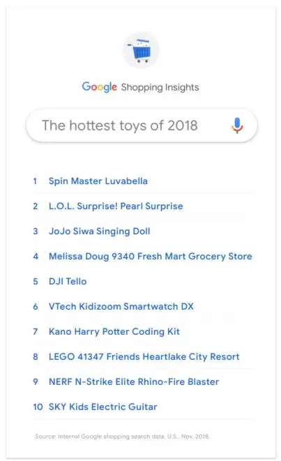 来自谷歌名单的其他搜索量最高的玩具也出现在亚马逊2018年的顶级玩具名单上,例如LEGO Friends Heartlake City Resort和Kano Harry Potter Coding Kit。