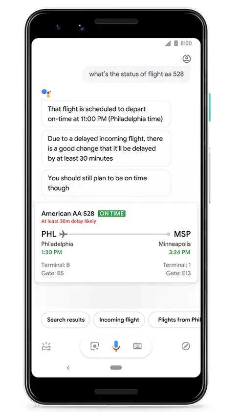 但也许你不是一个经常飞行的人(高兴和高兴)或不关心经历这个过程。在这种情况下,您会很高兴听到Google今天宣布,当其算法预测您的航班迟到时,其智能助理将很快主动通过您的手机通知您。此功能现已推出,应在未来几周内供所有用户使用。