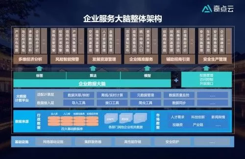 企业数据大脑重构了大数据时代的政企关系,通过大数据和人工智能等技术,融合企业多源数据,实现地区经济发展的多维分析、智能判断、趋势预测等,采用“1+N”建设模式(1个共建共享的企业数据大脑,叠加N个部门、N个场景的业务应用),面向企业提供个性化、精准化、主动化的服务,辅助政府科学决策,提升政企精准沟通效率。
