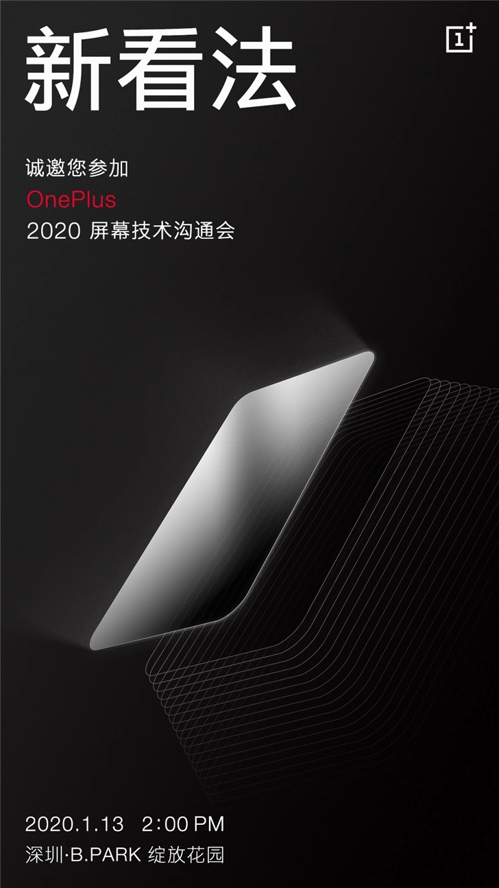 此前一加发布了邀请函,一加2020屏幕技术沟通会将于1月13日下午14:00在深圳B.PARK绽放花园召开。