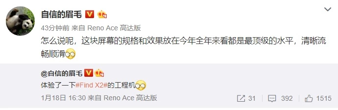 继昨日体验Find X2工程机后,OPPO副总裁沈义人今日也再度开始针对新机进行预热。