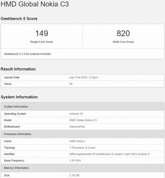 今年3月份,HMD Global 推出了诺基亚C2 入门级智能手机,新信息显示,该公司可能正准备推出另一款 C 系列手机,一款名为诺基亚 C3 的智能手机出现在了 Geekbench 基准测试平台上。