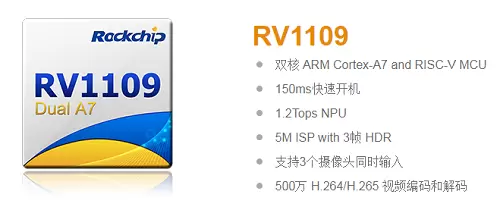 RV1109作为一款高性能AI视觉处理器,较之于其他通用芯片,RV1109具备更强算力,基于NPU这一专门针对深度卷积神经网络的处理核心,能够在拥有出色视觉算法处理能力的同时,兼具更低的功耗和更高的性价比。在IPC及其他智能视觉应用上均具有较大优势。