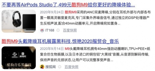 酷狗推出新品M9头戴式降噪耳机,多个流量媒体平台强势发声,圈粉无数年轻消费群体