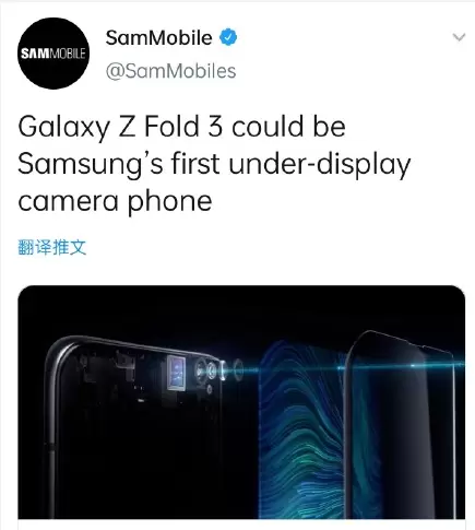 三星Z Fold3将采用屏下摄像头,最快明年6月上市,支持手写笔