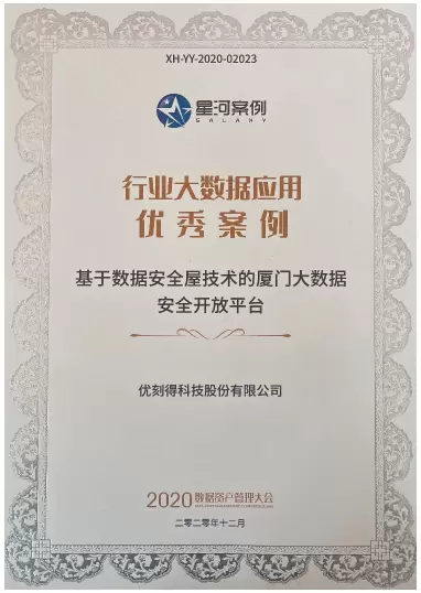 12月18日由中国信息通信研究院、中国通信标准化协会、中国互联网协会联合举办的“2020数据资产管理大会”在京召开。优刻得UCloud安全屋凭借在厦门大数据安全开放平台中的落地应用,从239份申报案例评选中脱颖而出,被授予“星河案例-2020行业大数据应用优秀案例”。