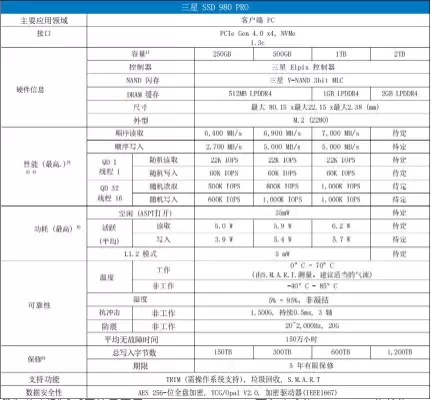 三星980PRO SSD的详细规格如下: