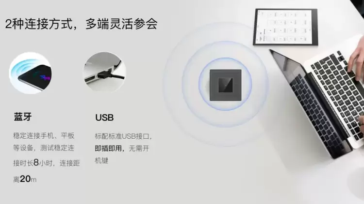 尽管AI力超群,还内置了5000mAh大容量锂电池,有着长达24小时的续航,它的外观却小巧精致,外出携带便捷、会议桌放置也不占地。在连接方式上,它也同样让人省心:支持蓝牙、WiFi两种连接方式,电脑/手机/平板都可以简单直连,并适配国内外主流通话软件。