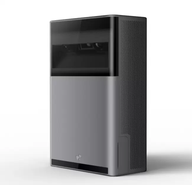 此外,产品支持水平或垂直放置两种使用模式,自动垂直梯形校正和自动对焦功能的加持,无需用户费心调整。为了方便用户使用,K1音量按键为触摸压力设计,顶部装有logo指示灯,开/关机、语音等多种场景均会有不同指示灯提示,并支持使用蓝牙遥控器,或双麦远场语音控制设备,大幅提升了整体操控上的便捷度。