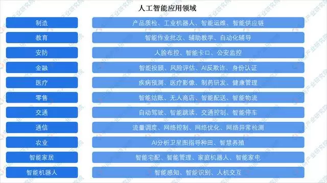 人工智能正由技术研发走向行业应用,形成从宏观到微观各领域智能化新实践,逐步渗透到制造、交通、医疗、金融、零售、金融等多个行业。人工智能发展催生出新技术、新产品、新产业、新业态、新模式,为产业变革带来新动力。
