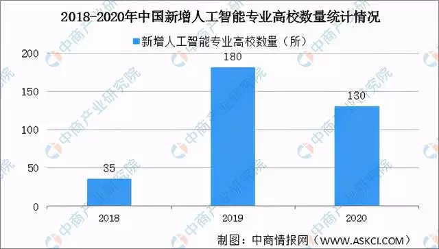 伴随着大数据、人工智能等行业的飞速发展,相关高校纷纷开设对应专业。2018年35所高校获教育部批准首批开设人工智能本科专业,2019、2020年新增人工智能专业的高校分别有180所、130所。人工智能备受高校追捧,人工智能专业连续2年成为新增备案专业数量最多的学科。据统计,当前国内共有345所高校开设了人工智能本科专业。