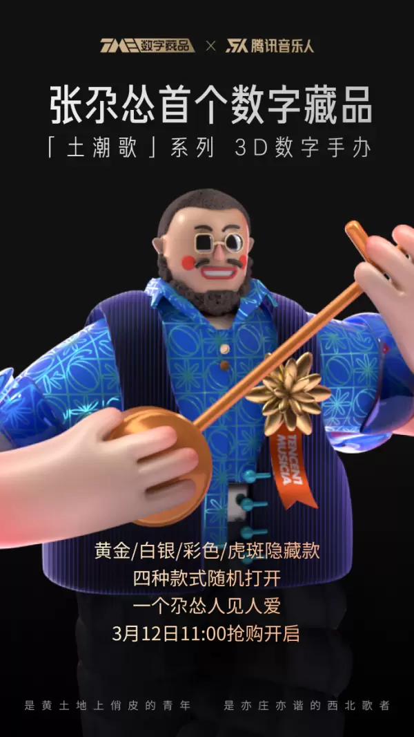 腾讯音乐人首度上架音乐人数字3D手办,柔情糙汉张尕怂解锁西北“土潮”风