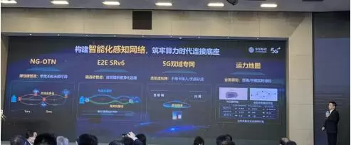 此外,为了应对多样化泛在算力的连接诉求,满足算力/算法/数据灵活调度和高价值业务体验保障的要求,华为公司助力浙江移动通过NG-OTN、端到端 SRv6、5G双域专网、运力地图4个技术创新构建了智能化感知网络: