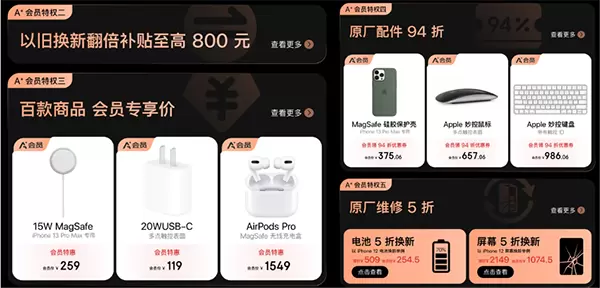 此外,Apple产品京东自营旗舰店还推出A+会员,通过付费会员服务为果粉打造极致的购机体验与用户保障。开通京东Apple产品自营旗舰店A+会员的用户,在购买iPhone 14系列新品时,可享以旧换新翻倍补贴,至高立省800元,更有365天只换不修、百款商品会员专享价、原厂屏幕/电池5折维修等多项权益,让消费者在京东收入iPhone 14系列更省心。