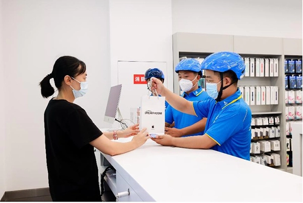 达达快送骑士在订单附近的门店取货iPhone 14新机