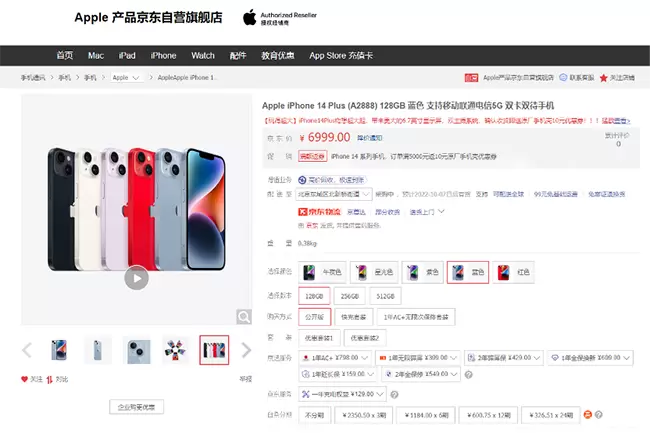 10月7日iPhone 14 Plus现货开售 京东下单以旧换新至高补贴400元