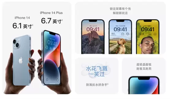 产品方面,iPhone 14 Plus搭载A15仿生芯片,配备5核图形处理器,通过升级内部设计获得更好的散热效果,保障高效性能持续输出。iPhone 14 Plus使用6.7英寸超视网膜XDR显示屏,高对比度、高分辨率和色彩进准度,外观设计采用航空级铝金属和超晶瓷面板,兼具好看耐用的同时,带来更舒适的视觉效果。锁屏也推出了新玩法,不仅墙纸立体效果更好,息屏状态下也能显示时间、日期等基础信息。
