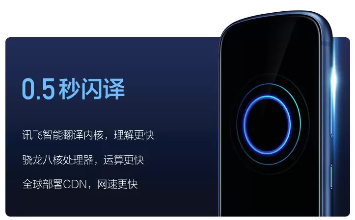 据悉,讯飞翻译机3.0在上一代基础上对软硬件进行升级,翻译速度达到“0.5秒闪译”,实现清楚拾音、响亮外放和智能识别多音多义词。